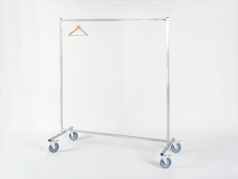 Coat Rack, chrome plated on wheels. If desired, also availabe with wooden coathangers.